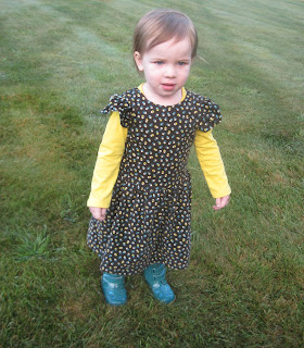 In the past week I have seen so many beautiful versions of the Hanami, I really want to try everyone of the options now. For the first one I chose to do a cross back dress. I am pretty much in the fall sewing mode now so I chose a corduroy with the hopes of getting a shirt underneath. We have cold falls here in Maine. I used Denyse Schmidt Chicopee Corduroy. I love how it came out. I lined it with a cute little house fabric (oops can't find what it is called - sorry). The dress is fitted and looks perfect without a shirt so I was surprised that Stella can wear a shirt under it as well and the dress still looks great. Are you ready for picture overload?